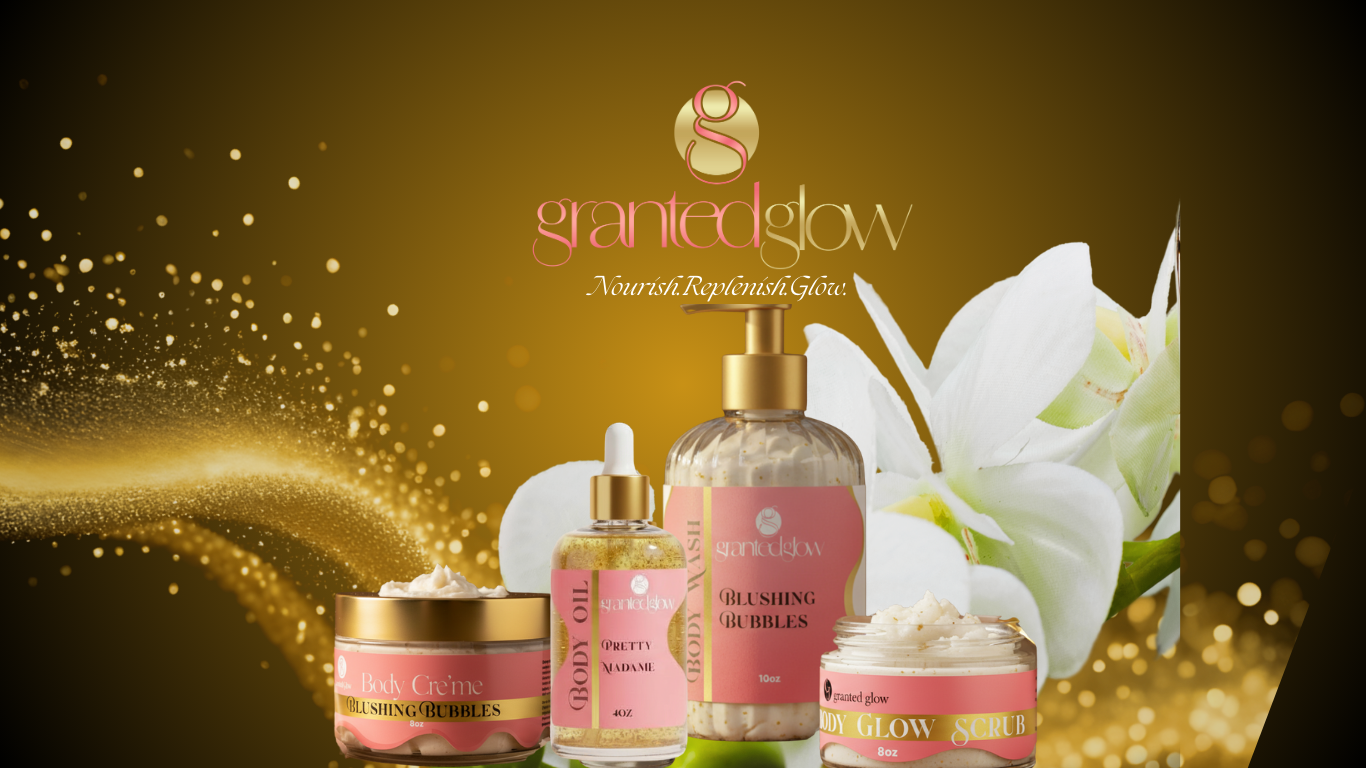 Granted Glow began with a simple belief — that every woman deserves to feel soft, confident, and beautifully cared for. What started as apassion for luxury self-care quickly grew into a brand dedicated to creating nourishing, indulgent products that elevate everyday routines. From our glow-boosting body oils to our rich, triple-thick butters, each formula is crafted with intention, love, and high-quality ingredients. As we continue to grow, our mission remains the same: to inspire self-love, celebrate beauty in all forms, and bring a touch of luxury to every moment.